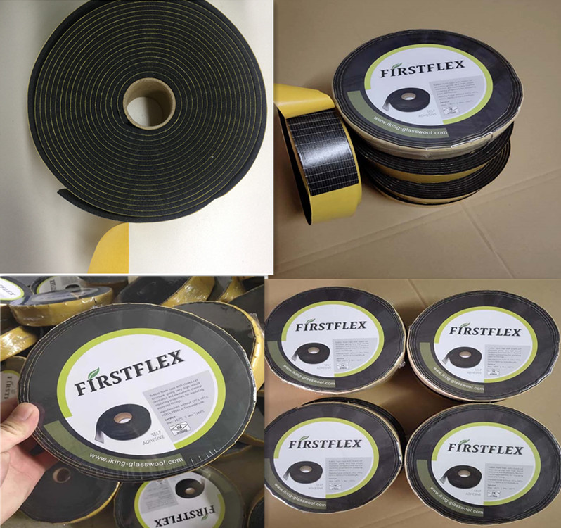 Firstflex Rubber Foam Neoprene Tape air duct flange connection, Also in the surfaces of seaming parts for tubes and rolls to reinforce the insulation systems. It provides a fast,easy method of insulating pipes and fittings. can be conveniently applied in both irregular surfaces and narrow working spaces.